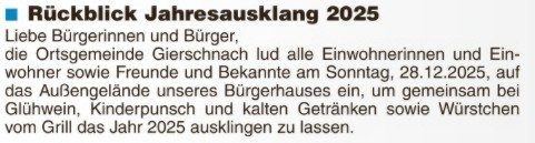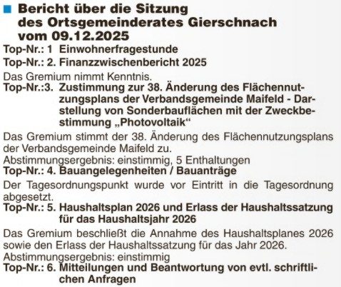 Aktuelle Bekanntmachungen der Gemeinde Gierschnach: